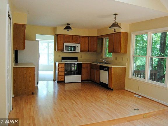 3 BR/ 2.5 BA Eastern View home. Main level w/wood flooring, eat-in kitchen, large family room w/ skylights, vaulted ceilings & brick FP. Laundry rm off garage, half BA, formal living rm, & formal dining rm. Top level w/ loft area; Master suite w/vaulted ceilings, attached BA, & walk-in closet w/vanity area, 2 other bedrooms & full BA. Large wooded backyard w/fence, deck & patio. 2-car garage.