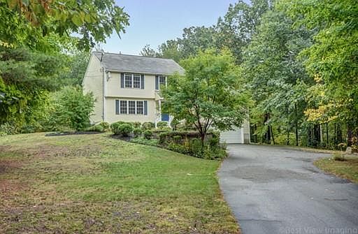 Set back off the street on a private 1.4 acre lot, this young and spacious home is warm and welcoming. There are 3 bedrooms, 3&1/2 baths, formal living room and dining room, as well as eat-in kitchen which is open to family room with cathedral ceiling and wood burning fireplace. Move in ready, it's been professionally landscaped for gorgeous curb appeal! This home features amenities such as central a/c, beautiful hardwood floors in kitchen, sliders to 2 level large deck, overlooking backyard and adjacent woodlands. You'll be amazed by the brightly finished walk out basement with full bath and wet bar/kitchen area- perfect for in-laws, teenagers or for just having a great party!! Don't wait!