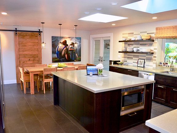 Stunning contemporary 4 bedroom, 2.5 bath home in one of Alamo's most desirable neighborhoods. Recently redesigned by Framestudio, this home features French Oak hardwood floors, custom baseboards, high end windows and doors, and recessed lighting. The formal living room has a cathedral ceiling and wood burning fireplace. The gourmet kitchen features Caesarstone counters, Heath tile, 8 burner Wolf range, Sub-Zero refrigerator, and over-sized center island. The kitchen opens to the family room w/ wood ceiling, Sonos sound system, large bar w/ concrete counter, gas fireplace, and built-in cabinetry. The master retreat has a resort quality bath w/ concrete sinks and Dornbracht fixtures, soaking tub, and plenty of closet space. French doors in the master and family room open to the Sunset Magazine featured back yard w/ tiled walkways, beautifully manicured gardens and flower beds, built in BBQ kitchen, gorgeous pool and spa with waterfall! 3 car garage with wine closet, a must see!