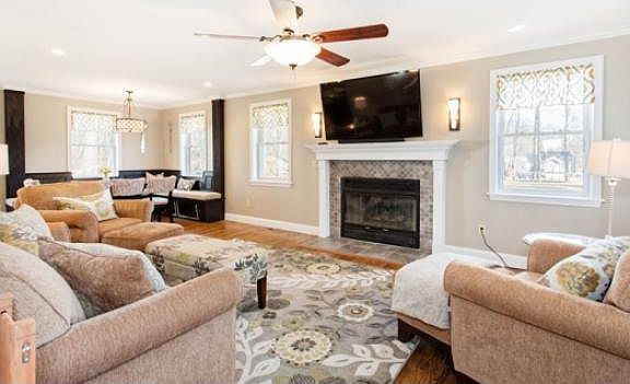 A great opportunity to purchase this newer Colonial which sits on a 2 acre slice of heaven close to Cobbetts Pond. The granite kitchen will impress you with its enormous island, cooktop stove with back draft vent, double wall oven, backsplash, counter space and high end finishes. The first floor is loaded with hardwood floors, formal dining room and open concept living area with gas fireplace. Drop off your things in the mud area with plenty of storage for just about anything. Entertain your guests in the huge great room. Large master suite includes walk in closet, balcony overlooking yard, double sinks in the bathroom with jetted tub. The second floor laundry has plenty of room to keep things in order. Finished basement with gaming area and separate office/den. There is a 3 car detached garage to store additional cars and toys or have a workshop with a full area upstairs waiting to be finished. There are two deeded beach rights with moorings. This property is a true gem!