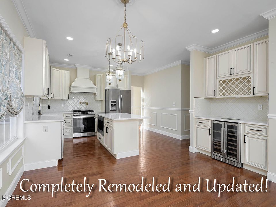 Luxury pot fillerCrown moldingStunning gourmet kitchenAbundance of custom cabinetsCustom window treatmentsQuartz countertops