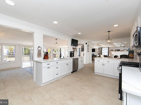 - Combination Kitchen/Dining, Exposed Beams, Family Room Off Kitchen, Open Floorplan, Recessed Lighting
