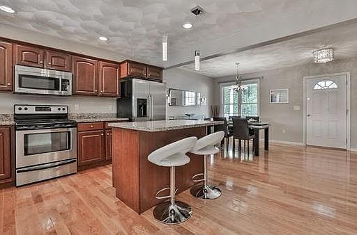 SUPER home in FANTASTIC neighborhood! SPACIOUS open floor plan perfect for entertaining!! Loads of light - this great 3+ bedroom home features - granite counters - stainless steel appliances - recessed lighting - center island - gas fireplace - slider to enormous deck - 1st floor master bedroom with full bath - cathedral ceilings -- workshop area - 2 car garage - 2 driveways - shed. Many upgrades include - hardwood floors, ENORMOUS Trex deck, irrigation, finished basement w/surround sound, hot water tank, new paint, granite mailbox, $5,000 in gorgeous lighting fixtures!! Perfect location in Hudson! Close to many restaurants and the new Highland Commons! Commuters - great access to 495! You don't want to miss this one!