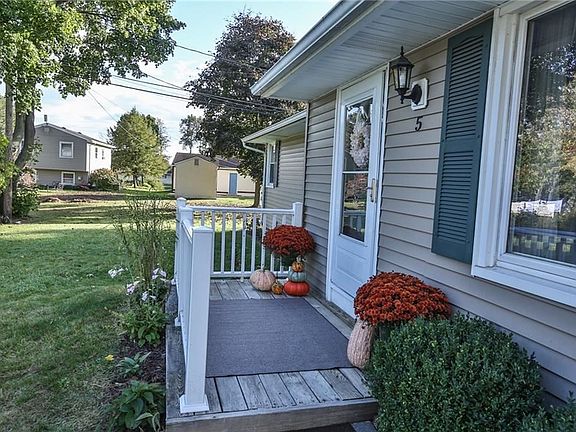 Note: Delayed negotiations: Offers due by Monday 10/12 @ 2:00pm .Absolutely charming 3 bedroom and 1.5 bath ranch on a quiet cul-de Sac in the Churchville-Chili School district! What a great location! The interior features a warm and welcoming eat-in kitchen with tile floors and plenty of cupboards. The dining area flows into the bright and generous family/living room. There are 3 good size bedrooms with full closets, adjacent to the full bath. Gleaming hardwood floors are throughout and compliment the neutral, current paint and decorating choices! Enjoy the partially finished lower level with a play area, bar/entertaining space and an there is even an additional shower. Step out the sliding glass doors to the backyard that is private and deep, it has so many options for you...patio or pool...you decide. 5 Girard Circle is immaculate and well maintained and ready for its new owners!