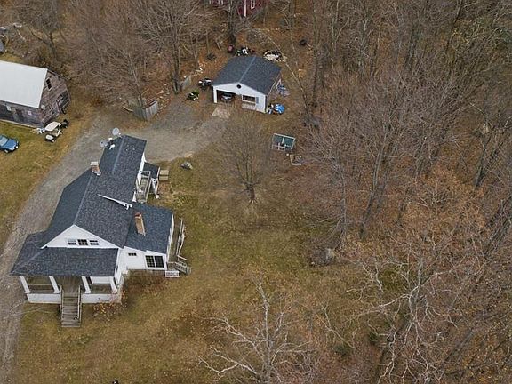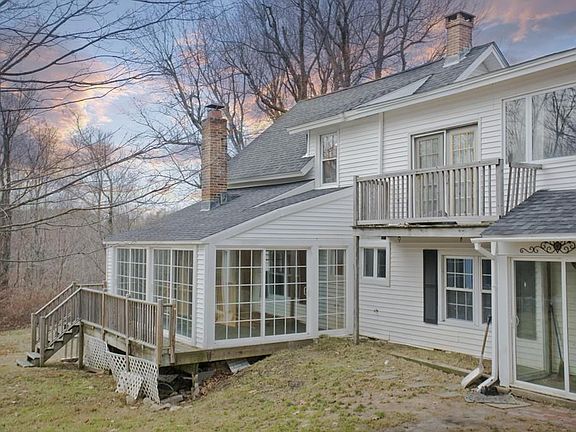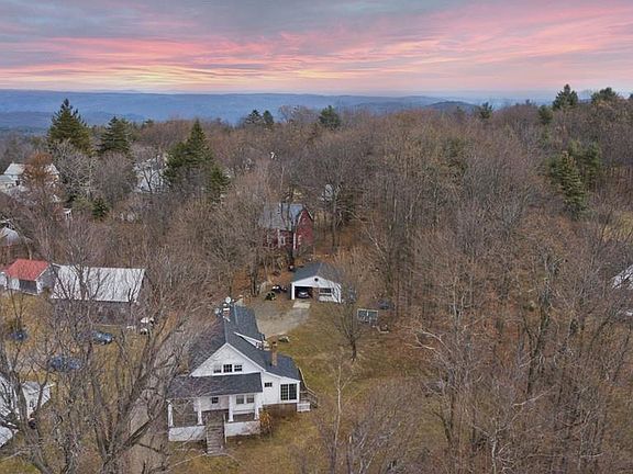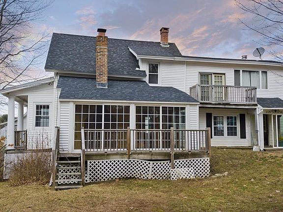 Set on nearly an acre of land, this beautiful house with wrap-around porch has 3 bedrooms, 2 bathrooms and endless possibilities. Picture it: you wake up in the master bedroom with pitched ceiling and French doors that open to a private balcony. Wash up in the upstairs bathroom with claw-foot tub. Have breakfast in the eat-in kitchen with three big windows for ample natural light to make the hardwood floors shine. Sip your coffee in the three-season porch that overlooks the large, wooded backyard. Off in the distance, the garage offers bonus storage space for lawn equipment. Don't worry about tracking dirt into the house; the large mudroom accommodates coats, boots and more, and a pellet stove warms you up before tossing clothes into the laundry in the adjacent bathroom. When you're ready to unwind, enjoy the wood-burning fireplace in the living room for cozy relaxation. You don't have to imagine much longer! Visit during the open house on Saturday December 16th from 12:00-1:30