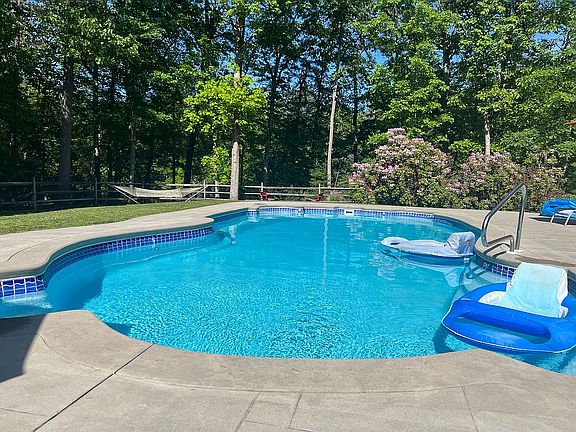 Waterfront contemporary in Forest Lakes that has been updated with new eucalyptus wood flooring t/o main level, today's fresh colors, new roof, new neutral wall-to-wall carpeting, new basement ceiling & lighting, hot tub, new central air, new whole house humidifier, new water heater, new water treatment system, new front & rear Paver walkways, new security system, freshly painted interior & exterior & updated kitchen. The kitchen has granite countertops, new wood flooring, all new stainless appliances & wine refrigerator. 2-story foyer entry w/ skylite, living room w/ marble fireplace, formal dining room, family rm w/ stone fireplace, new powder rm, spacious laundry rm & finished basement. Sliding glass from every room on main level to the extra large backyard deck. Step down hot tub off of the deck. Master suite w/ private deck, walk-in closet & full bath w/ soaking tub & skylite. 2 car side turned garage. Spacious backyard w/ shed, horseshoe pit & lake views. New salt water heated pool . Don't forget to touch the Tiki for good luck!