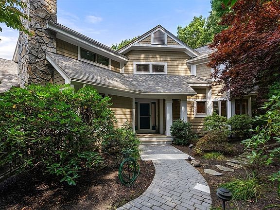 FABULOUS NEW PRICE Impressive 10 room, 3 / 4 bedroom single family attached townhome with private yard space and large deck. Highlights include the vaulted ceilings, gorgeous wood floors in kitchen and dining room, spacious rooms, fine millwork and meticulous care. Large FIRST FLOOR MAIN BEDROOM suite with double closets, and large bathroom, elegant 2 story foyer, entertainment size living room and dining room, spacious kitchen with newer SubZero/Thermador appliances + dining area with views of the yard + patio. Cherry wood paneled family room / office w/ fireplace, mudroom/laundry room, attached 2 car garage + parking for 3, complete the first floor. Upstairs two ample size bedrooms plus a study with closet. Huge walk-out basement, top of line 2014 gas HVAC, AC, 2018 roof + skylights, 2024 road resurfacing. Lushly landscaped, gated community of 17 townhomes, sited adjacent to conservation land + convenient to major routes, shopping, and hospitals. Swimming pool and tennis court.