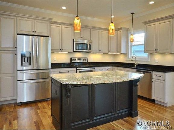 New Arts & Crafts home in Black Mountain. 3 bed/2,5 bath with spacious open floor plan, large kitchen with upgraded stainless appliances, including refrigerator. Hardwood on main level, tile bathrooms, granite countertops, gas log fireplace, heat pump, fiber cement siding, 2-car garage, large back deck and nice mountain views. Near Lake Tomahawk, downtown, shopping & restaurants in development of new homes. Taxes TBD. This one won't last long!!!