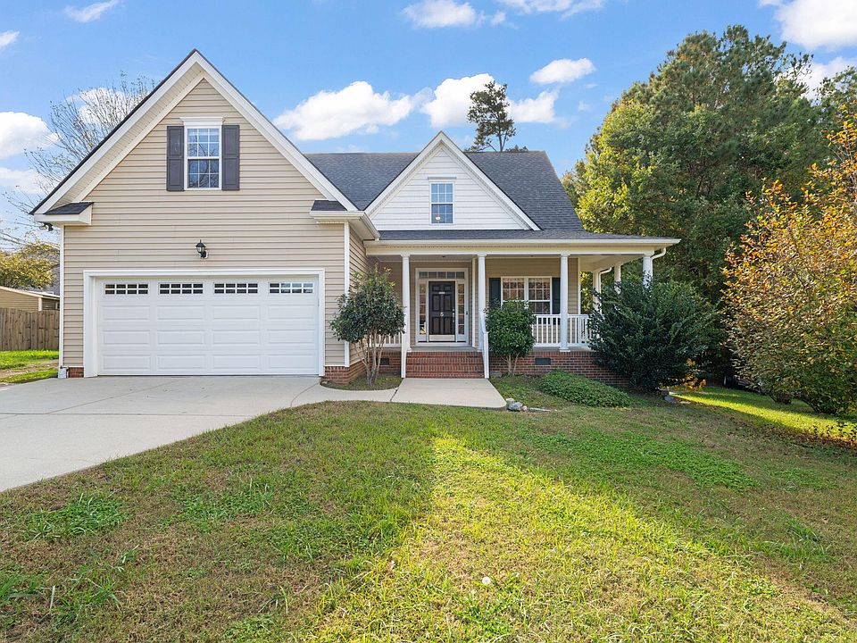 Discover this move-in-ready 3-bed, 2.5-bath home, just a short stroll from downtown Wendell! Tucked away in a quiet cul-de-sac, this inviting home offers an airy, open floor plan with vaulted ceilings and a spacious first-floor primary suite. Cozy up by the gas fireplace, enjoy gatherings on the expansive rear deck, or relax on the covered front porch. It also features a 2-car garage, private powder room, versatile bonus room, and extra storage. Updates include a new water heater (2023) and roof (2021). Secluded backyard with fenced area and pergola is perfect for outdoor gatherings. And there's no HOA! Enjoy Wendell's restaurants, breweries, and festivals—all with small-town charm. A seller-provided home warranty offers added peace of mind.
