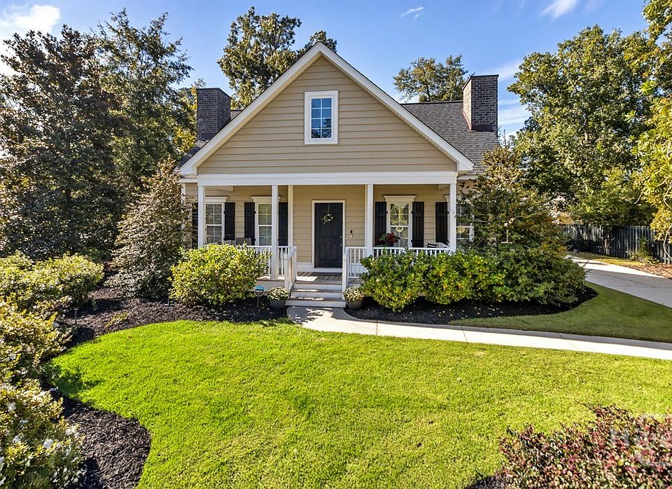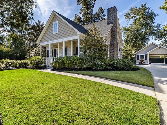 Discover this charming single-level 3-bedroom, 3-bath cottage perfectly situated on a corner lot in the heart of Richmond Hill. Once a former model home, it showcases quality finishes and thoughtful details throughout. Enjoy beautiful wood flooring, crown molding, and custom trim that elevate every room. The spacious primary suite offers a luxurious en suite bath, walk-in closet, and an additional closet for ample storage. A secondary bedroom with its own private bath provides comfort for guests or family. Relax on the inviting covered front porch or entertain on the paver patio in the backyard. Additional features include a walk-through laundry room, 1-car carport with storage closet, and access to a community pool and playground. With easy access to I-95, this delightful cottage blends convenience, style, and Southern charm—ready to welcome you home.