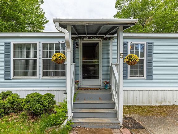 5 Gould Lane in Berwick, Maine, is a well maintained 3-bedroom, 2-bathroom double wide manufactured home. It is situated on a large 2+ acre lot at the end of a private road. Set among the trees, enjoy the privacy of a large back yard lined with trees that offer both shade and privacy. The large detached 3 car garage offers space for parking and/or a terrific workshop. Central Air is a nice feature that will keep you cool in the Summer months and the quiet dead end street creates a private lifestyle while enjoying all the conveniences of nearby shopping and dining.