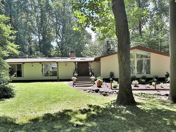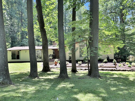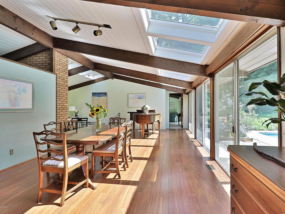 Over the river and through the woods will lead you to this Mid century modern style home with 4 bedrooms and 2.1 baths. 1.46 acres surrounded by 794 acres of one of Monmouth parks most beautiful parks, Hartshorne Woods. Mahogany beamed vaulted ceilings throughout and wood burning fireplace. Skylights and three sets of sliding doors for abundance of natural light. Master bedroom with full bath and walk-in closet with new carpeting. Eat-in kitchen with quartz countertops and stainless steel appliances. Family room full of windows, new carpeting and bar for relaxing. Newly painted inside and out and perfectly landscaped front yard and driveway. Perfect sized in ground pool and patio. 2 car garage and shed. Hike, bike and kayak out your door in this once in a lifetime location!