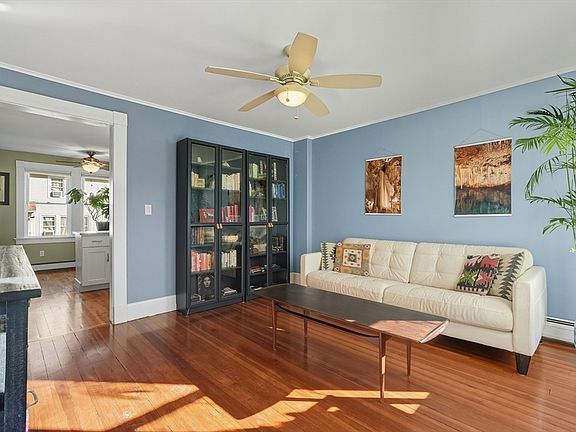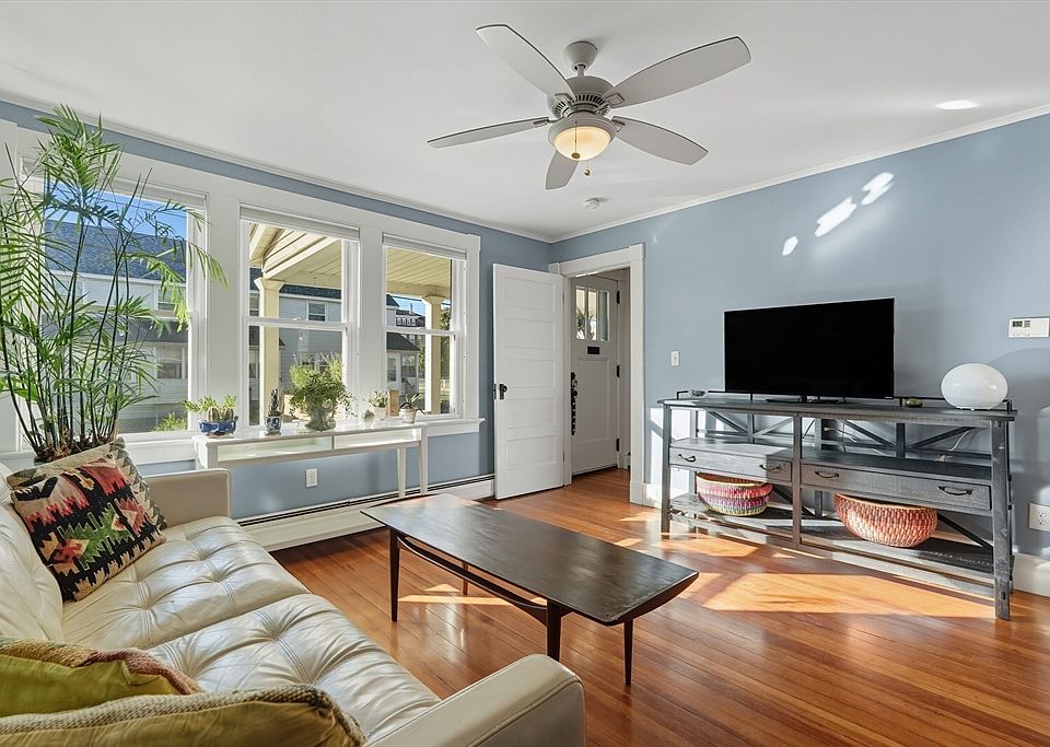 Affordability and style can be yours in this beautifully remodeled Easthampton townhouse. Inside the front door, complete with its original turn crank doorbell, you'll find warm hardwood floors and updated windows that bathe the living room in natural light. The refreshed kitchen features tall shaker cabinets, quartz counters, and a cozy coffee bar with garden views. An adorable 3/4 bath rounds out the main floor. Upstairs, find 2 spacious bedrooms and a remodeled bath with modern subway tile and soaking tub. The 3rd floor bedroom adds extra space with the perfect view of Mt. Tom from your reading nook. Move-in ready with newer roof, windows, hot water heater, and dry basement, this home combines the feel of a rare single family with the ease of a pet friendly 4-unit owner occupied condo. Ideally located near Union/Cottage Streets, the bike path & trails makes this one a winner!