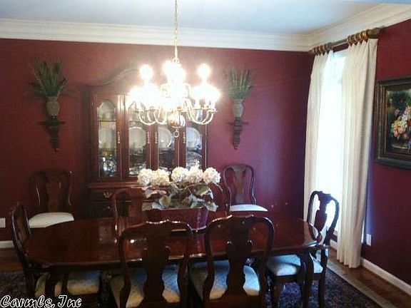 For more information, contact Carol Garner at (501) 580-3373. Visit http://www.crye-leike.com/littlerock/10356094 to view more pictures of this property. Unbelievable! This custom built home is in absolute pristine condition. One owner home with wood floors throughout downstairs; large office with built-ins and French doors. Spacious master and bath suite is beautiful. Upstairs has 2 or 3 large bedrooms, (currently used as two bedrooms & bonus room) plus balcony area with a sitting/study area. Expansive kitchen with granite tops and large eat-in area which opens to a sunroom. Stunning, private backyard has large deck/entertaining area. **ALARM**