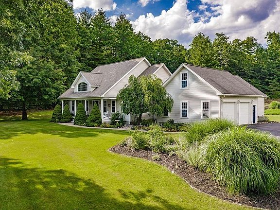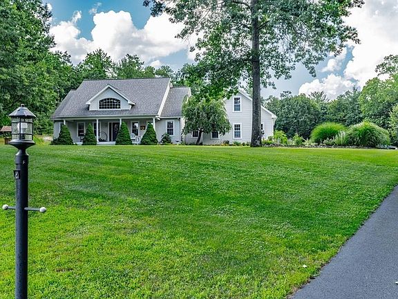 Expect to be impressed with this well maintained CUSTOM BUILT Contemporary RANCH style home set on impeccable 5.5 acre lot located at the End of the Cul-De-Sac! Looking for privacy and location? This property has it all and features a long driveway lined with lamp posts, inviting open front porch, Kitchen with tiered Island, Central Air, Open Floor Plan, Living Room w/Stone Floor to Ceiling Fireplace, Cathedral Ceilings, Recessed Lighting, Master Bath w/Walk-in Steam Shower & double sink vanity, 1st floor laundry, Light & Bright Family Room with Custom Built Bar, Trex Deck w/Hot Tub, Irrigation System and a Koi Fish Pond w/waterfall. There is a walk up bonus room just waiting to be finished for additional living space!