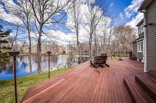 Exquisite serene private setting. Enjoy relaxing on your mahogany deck overlooking the water. Nature at it's best. One of the largest lots in the popular Deer Creek neighborhood w/over 400ft of pond frontage. Renowned local builder; professionally landscaped yard; well maintained home by original owner. 3 car garage colonial w/ 4 bedrms, 2 full baths & 2 half baths. Enjoy your modern kitchen w/ white birch cabinets; granite counters, glass tile back splash; brand new s/s refrigerator, microwave, cooktop & dishwasher plus double oven:(upper convection). LVR and DR w/ dentil crown molding & hardwood flooring. Custom builtin bookcases on balcony overlooking Family room. Chill out & watch TV in your cozy FR w/the wood burning fireplace. Work at home in 1st floor office. 3 equal sized freshly painted bedrms w/new carpeting. Fantastic views from master suite: lying in your bed or soaking in your tub. Large walkin closet leads into additional dressing room & then thru to an exercise/TV room