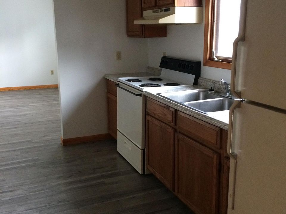 The apartment is clean quiet new flooring new countertops and freshly painted walking distance to post office grocery store, General dollar store,restaurants and school Two bedroom half house off street parking deck No smoking no pets one year lease security deposit first months rent