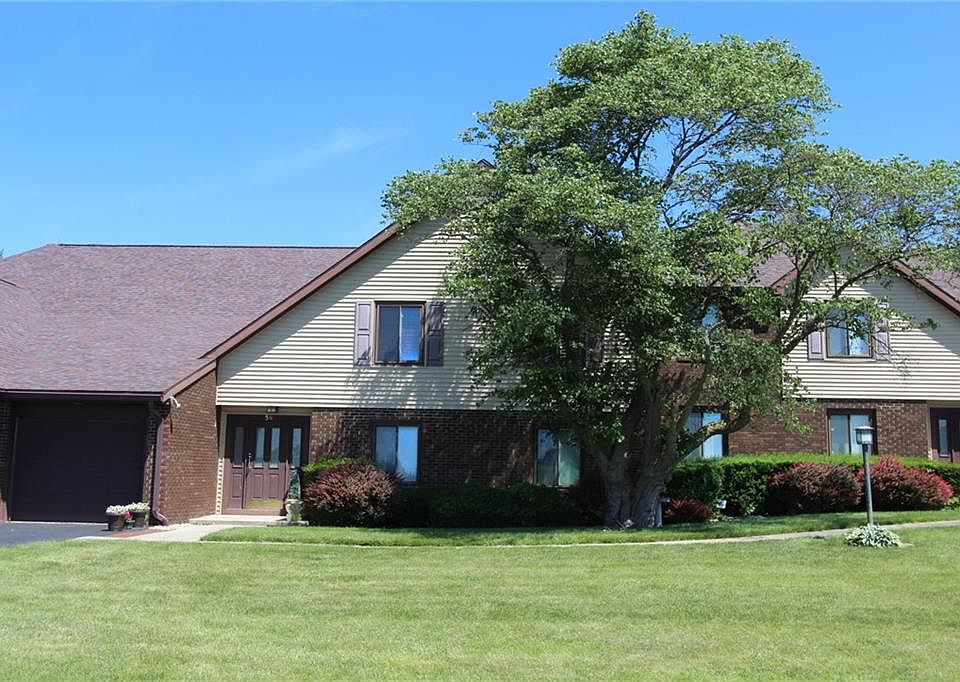 Carefree living with a choice location!! Beautiful condo overlooks the golf course. Kitchen updated 2016 with white cabinetry, granite counter tops, porcelain floors; open to living room and breakfast area. Both baths updated also. New furnace and central air 2019. Large rec room, bar, and 1/2 bath in basement awaiting your personal touch. Monthly maintenance fee of $200 covers trash, water, sewer, snow removal, and lawn care.