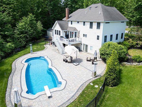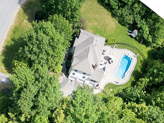 Just listed! Handsome hip-roofed colonial sited on a 1.78 acre well landscaped lot on a quiet cul-de-sac in one of this town's most sought after neighborhoods - The Meadows! The floorplan of this 2004 home is one of the best we've seen with perfectly square and large guest bedrooms, open concept first floor design and a luxurious primary suite with 11'11" vaulted ceilings, an ensuite primary bath featuring a 5'10"x4'1" double headed walk-in shower and a 15'7"x4'11" walk in closet that is sure to please. The epicuirean-inspired custom island kitchen features a built-in planning desk, an 8'3" breakfast island and a separate pantry area with an antique service center (staying). Two-story entry foyer with a formal dining area on one side and a first floor office/den/tv room with glass french doors. Generously-sized family room with a wood burning fireplace with a delightful and sunny sunroom with 12'4' ceilings, hardwood floors and direct access to the 18'x14' deck overlooking the heated inground pool and extensive patio areas (covered and open). Partially finished walk-in lower level allows additional square footage with an easy finish. Rare three car garage and a detached and oversized shed. The low-trafficked neighborhood is expansive and great for walking and bike riding throughout without having to be on a main road.