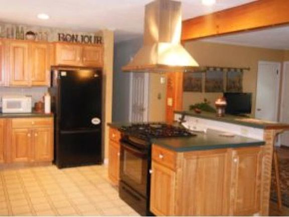 ONE-LEVEL LIVING AT ITS BEST! Wonderful space and a perfect layout for entertaining,this sprawling ranch is a sheer delight! Pocket doors lead to a cathedral-ceilinged family/dining room combination with parquet flooring and pellet stove for both heat and ambiance, fully applianced open-concept kithen/breakfast nook/living room with center island, beautiful maple cabinetry, hardwood flooring, and brick hearth wood stove, insulated 3-season room, newer furnace and roof, portable garage, generator-ready and for when the seasons change, central air and an inground swimming pool add to the amenities! Convenient to shopping, schools, and highways, too!