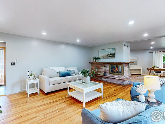 Charming Mid Century Modern 50's brick ranch in a quiet cul de sac. Living Room w. Wood Floors and Multi Sided Fireplace. Kitchen features Stainless Steel Appliances and tons of natural light. Wood Flooring rolled into Master Bedroom and Bedroom 2. Sun Room could be converted into 3rd Bedroom. Updated bathrooms, Back Yard w. covered deck and fire pit. Spacious Driveway and 2 Car Garage. Great location in quiet neighborhood. Does not have lake access.