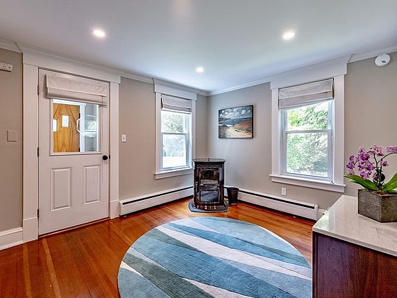 One of the sweetest homes around is nestled at the end of a quiet, freshly paved dead-end street. You get so much in a small footprint, with two bedrooms, two baths, an entryway with a closet, a spacious living room, an office, a welcoming foyer with pellet stove, well-equipped kitchen, and convenient mudroom. Additionally, you will find a screened porch, an expansive 2-car garage that can accommodate your vehicles, a workshop and storage needs. This picturesque one-acre plot provides lush privacy and soothing sounds from Leaping Well Brook, just down the hill. You will also appreciate the owned solar panels mounted on the garage, ensuring energy savings. This delightful home must be seen to fully appreciate its charm and functionality. Offer Deadline set for 12pm on Tuesday, June 18. No escalations, please.