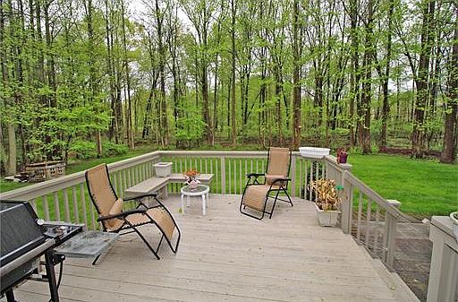 Stunning Monroe Woods North Facing Center Hall, private tree lined premium lot ! Featuring custom kitchen w/ new large bay window, center island, granite,42 " cabinets and crown moldings Fam rm w/ fireplace, gleaming hardwood floors,freshly painted New 2" insulated garage doors, split zoned heat/ac and finished basement !