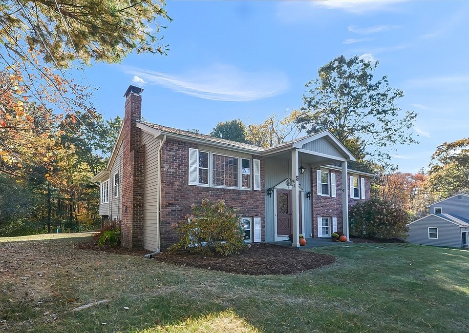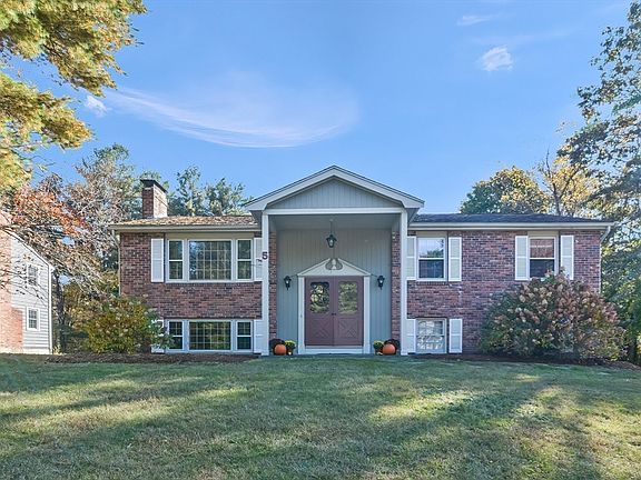 You hit the bullseye with this one! Columned, brick front split-entry home right at the quiet end of a lovely Franklin neighborhood. Lots of privacy with a forested back yard backdrop. Kitchen updates include maple cabinetry, stainless steel appliances, and a tile backsplash. Cheery living room boasts a wood-burning fireplace, recessed lights, and a sunny picture window. Separate dining w/ French doors. Jaw-dropping 13'x13' sunroom addition in 2005 features cathedral ceilings, 3 walls of windows to the outdoors, and access to a grilling deck, perfect for summer entertaining. Bonus space in the lower level family room, complete with a second fireplace. Fuel-sipping Buderus gas boiler (2020). New garage door openers in 2022 & 2024. New driveway in 2022. Architectural shingle roof. Exterior paint in 2022. Certificate of Compliance in hand for recently installed septic system. Letter of Lead Compliance. All this just a short drive to 495 and the Commuter Rail. Come fall in love!