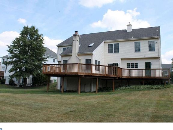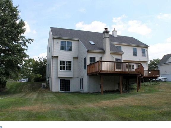 Come tour this 4 bedroom, 2.5 bath 2 story colonial in the desirable community of Bridlewood, located in Mount Laurel. This home offers, Living room, formal dining room, kitchen with eat in area, family room with wood burning fireplace, den, 1st floor laundry, access to a 2 car attached garage, hardwood & tiled flooring, and a glass slider off of the kitchen area that opens to an oversized deck that expands across the back of the house. In addition, there are soaring ceilings, two skylights and a half bath. On the 2nd floor there is an expansive master suite, which includes a sitting area, his-and-hers walk-in closets and a large full master bath. The additional three bedrooms all offer great space and ample closet space. Another full bathroom and 2 linen closets complete this second level. A finished walk-out basement provides ample additional living space, plus storage. The slider off of the basement opens up into a backyard that backs up to woods. This is a great opportunity, so make your appointment today!
