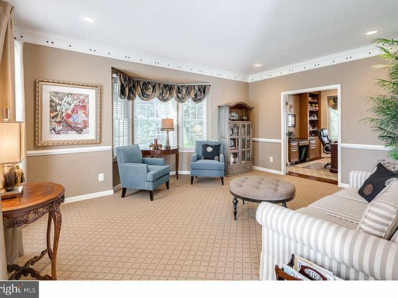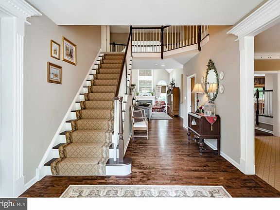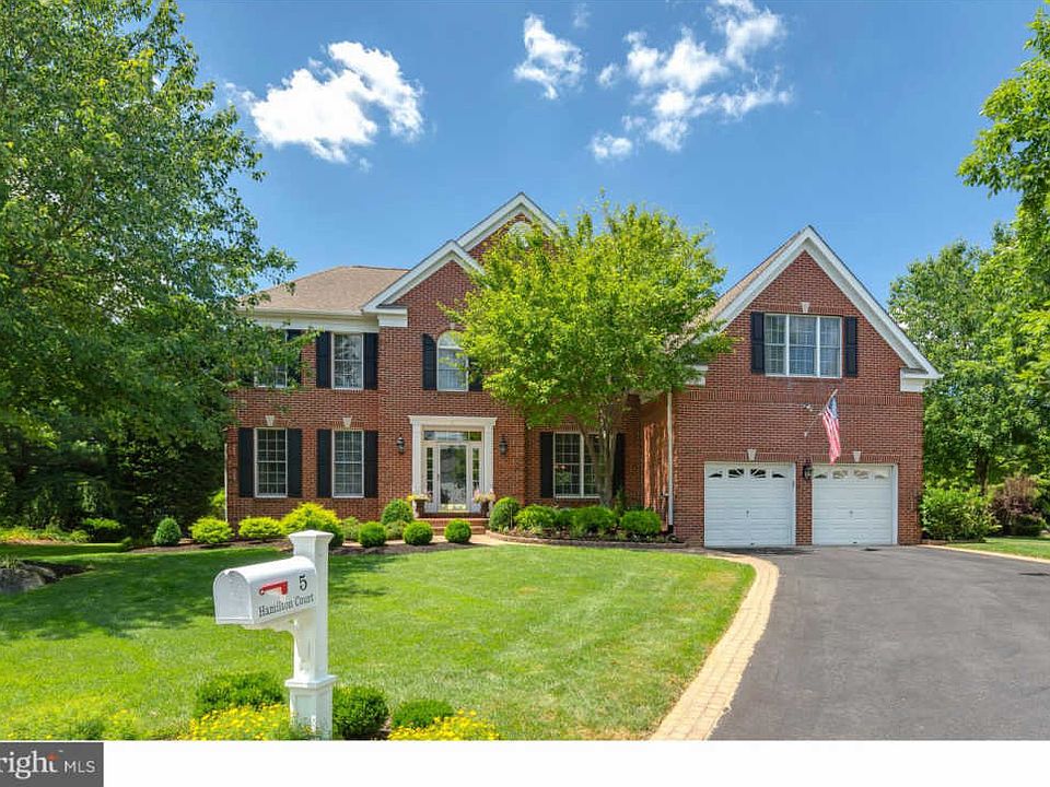 Distinguished 5 bedroom brick-front home with stunning curb appeal situated in a quiet cul-de-sac of the friendly Moorestown Hunt Community. This is the former home of Philadelphia Eagles Head Coach Doug Pederson. Enjoy entertaining family and guests in this beautiful open floor plan that offers sunlight in every room. The inviting spacious Foyer is flanked by the elegant Dining Room and formal Living Room with chair rail, crown molding and a charming bay window. The expanded two-story Family Room welcomes you with a vaulted ceiling, skylights, a gas burning fireplace with slate surround centered between distinctive circle-top windows, and double door entrance to the generous-sized private Study with built-in cabinetry and shelves, plus a bay window. Adjacent is the expansive, upgraded gourmet Kitchen featuring ample cabinetry with under cabinet lighting, all NEW JENN-AIR stainless steel appliances include; dishwasher, island with JENN-AIR gas cook top, double Microwave and Convection Oven, NEW SAMSUNG tri-door refrigerator, hardwood flooring, recessed lighting, and Breakfast Room with rear staircase and slider door to the brand-new paver rear patio (2017). The main level also offers gorgeous refinished hardwood floors, a powder room and Laundry/Mud Room with entrance to the rear yard and garage inside access. Retreat to the Upper Level with the relaxing Owner's Suite featuring an extra-large walk-in closet and lavish Bath with stall shower, soaking tub, large vanities with double sinks. Four additional bedrooms each one accessing a Jack & Jill Bath complete the Upper Level. Yes that's right, two Jack & Jill Baths! The enjoyment continues in the finished Lower Level offering versatility and space for everyone, including a sitting room/office, fitness/bonus area, and large game room. Additional amenities include 2 ZONE LENNOX HVAC with 2 LENNOX I-COMFORT WIFI-ENABLED THERMOSTAT (2016), HOT WATER HEATER (2016), invisible dog fence, security system, irrigation system, PLUS all NEW recessed lighting and smoke detectors were replaced. The beautifully landscaped exterior has been enhanced with a rear yard patio, an expanded driveway and large garage. Enjoy your walks in this coveted, friendly neighborhood community, minutes to shopping and major access routes.