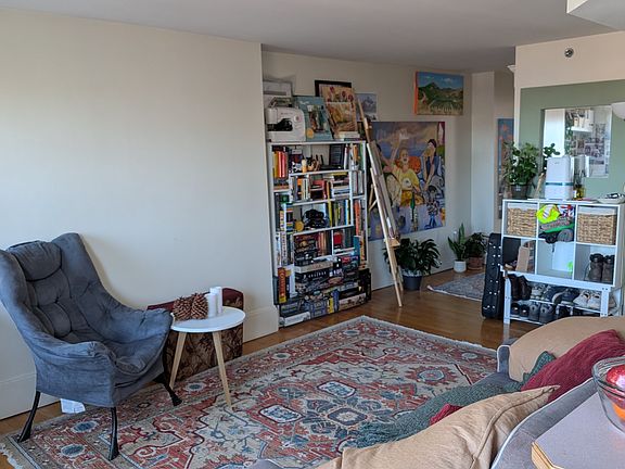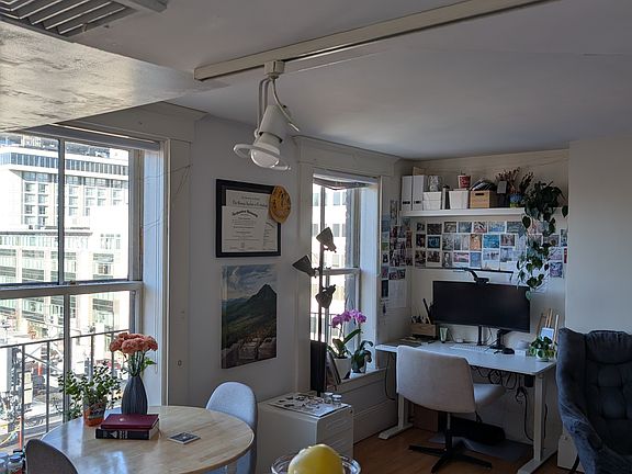 Beacon Hill 4th floor spacious 1 bedroom for an April 1 move in! Front to back unit with lots of windows and great light! The apartment features a coat closet when you walk in and a bright living room with nook for a desk and an open concept kitchen with dishwasher. Wide hallway with full bathroom off of it and IN UNIT laundry leads to an oversized bedroom with 3 front facing windows, double closet and lots of space for a 2nd home office area. CENTRAL AIR and a lovely common roof deck complete this offering. This is a 4th floor walk up - sorry no pets. April 1 move in.