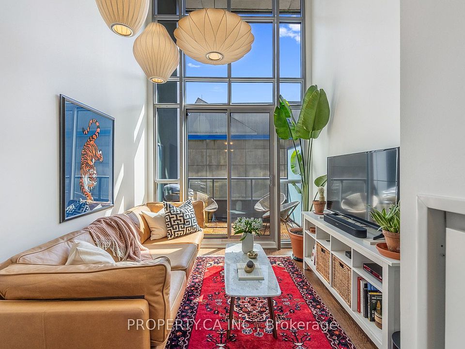 Offers anytime! Embark on refined urban living with this impeccably designed home in a boutique loft. Awaken each day to the gentle embrace of morning sunlight, flooding this loft's one-bed, two-bath layout with warmth. The soaring ceilings, featuring Herman Miller suspension lights and an intelligently crafted layout, create an atmosphere of spaciousness and allure. The unique design is a rare find in the Toronto market, boasting a functional layout, private balcony, and a second-floor primary bedroom with an oversized en-suite washroom. The building features a concierge, a gym with a yoga studio, a basketball court, guest suites, visitor parking, a party room and a pet spa! With three elevators serving just eight floors, you enjoy swift access to your condo without the hassle of long waits. Immerse yourself in the vibrant atmosphere of Liberty Village, with an array of bars, restaurants, and entertainment venues mere moments away. Navigating your commute is effortless, with the GO train station conveniently located nearby and easy access to highways and major TTC routes. Tucked away in the south end of the Village, Liberty Market Lofts is insulated from any major street, offering some peace and tranquillity while being steps from some of Toronto's most iconic spots like BMO Field, Brodflour Bakery, Balzac's Coffee, Brazen Head, Liberty Soho, Local Bar & Eatery and Left Field Brewery. The unit comes with one parking space and one locker.