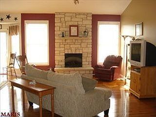 This beautiful great room ranch home with four bedrooms and 3 full baths, sits on a spacious 3 acre level lot backing to mature trees. The accent gables and brick and stone veneer front create outstanding curb appeal with character. The maintenance free exterior, including vinyl siding and enclosed soffits and fascia, complete the outside. Inside offers a comfortable living environment with an open floor plan, hardwood flooring, breakfast room and fireplace. The large kitchen has gorgeous light oak cabinets, pantry, smooth top range, built-in microwave, breakfast bar and ceramic tile flooring. The master bedroom suite offers a walk-in closet, bay window and private bathroom. Downstairs, you will find a finished living area that could be used as a second living quarters, including; a full bath, laundry room, sleeping area, and family room with a walkout to patio. Other features include; a detached 2 car garage, 2 tier cedar deck, main floor laundry and entry foyer.