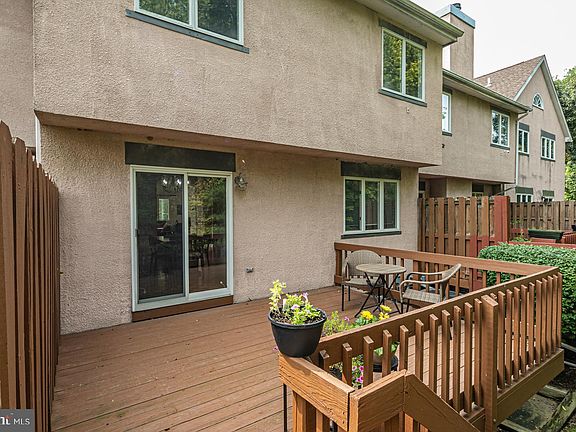 Bright and fresh 2 bedroom plus loft and 2-1/2 bath contemporary townhouse at Princeton Greens. Cheerful tiled foyer opens to large living room with floor to ceiling oak trimmed wood burning fireplace. The formal dining room features sliding glass doors opening to a large deck overlooking woods. The oak and granite kitchen boasts tumbled marble backsplash, stainless steel appliances, and tile floor which continues into the sunny breakfast room. Oak parquet floors run throughout the formal rooms, loft, and bedrooms. The recently renovated baths feature tiled walls, a pedestal sink in the powder room and upstairs, sleek new vanities, a generous shower with frameless glass doors, and lovely contemporary tiled floors. Also upstairs is the convenient stackable washer/dryer. The large basement area offers storage or exercise space and easy access to the attached oversized 2-car garage. A truly lovely move-in ready townhouse!