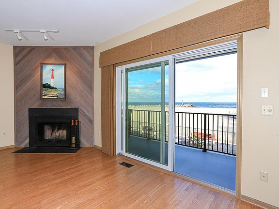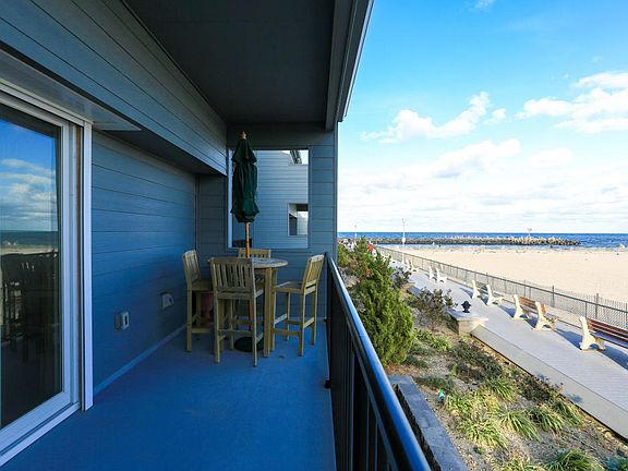 Exclusive Oceanfront Living at this luxurious 2 BR, 2 FULL bath, 2 story Townhome. Enjoy inlet & ocean views from a private balcony, just steps away from the beach & boardwalk. A cozy woodburning fireplace in the sunken living room invites company to gather! The custom kitchen w/ SS appliances & updated cabinetry lends itself to family fun! 2 generous bedrooms w/ custom walk-in closets & accompanying private baths offer plenty of room for guests! Custom built-ins in the 2nd BR are ideal for an office or entertaining space! Relax w/ a dip in the heated pool or on the beach - a stone's toss away! 2 onsite parking spots round out this Jersey Shore gem!