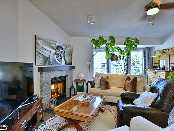 EXECUTIVE SKI SEASON RENTAL December 15, 2022 to April 14 , 2023 Upscale pristine professionally decorated and furnished 1400 sq ft 3 bedroom 3 full bath reverse floor plan condo with open concept kitchen, dining, great room. Located in a quiet enclave in the west end of Collingwood. Main level features large bedroom with with queen bed and two single bunkbeds, four piece washroom, master bedroom with king size bed with ensuite washroom, jacuzzi tub and walkout to patio. Upper level with wow factors features a 20 foot vaulted ceiling with sky lights, open concept kitchen, dining, great room with gas fireplace and balcony, third bedroom with semi-ensuite three piece washroom completes the upper level. Perfect location five minute walk to Cranberry Marina, shops and restaurants. On the famous Georgian biking and hiking trail, perfect for snow shoeing, cross country skiing or long walks. Five minutes to Historic Downtown Collingwood and a short 7 minute drive to the Village at Blue and skiing. Close to all private ski clubs. Efficient forced air gas heat and gas fireplace. Reserved parking space at front door plus ample visitor parking. Private locker at front door for all your ski equipment and more. Rental rate is for December 1 to March 31. Flexible start and finish dates available. Snow removal, snow shovelling, parking and wifi included in rent.Utilities in adddtion to rent. Sorry no pets, no smoking.Please check out virtual tour under mulit-media 2022-09-01