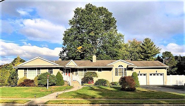Looking for your dream home? Offering you a beautiful ranch that has been completely renovated and expanded. SPACIOUS OPEN FLOOR PLAN, perfect for entertaining. High end finishes, hardwood floors throughout. Large, bright kitchen with custom skylight, wood cabinets, granite countertops and stainless steel appliances. Master bedroom with elegant on-suite bath (tub, large walk-in shower, double vanity), walk-in closet, vaulted ceiling with wood beams. Bedroom #2 - with lots of natural light also with a private bath (on-suite). Bedroom #3 - bright and large with an expanded wall to wall closet. Kitchen open to Family Room with custom stone wood burning fireplace, Living Room with vaulted ceiling and wood beams, and dining area. Great Room feautures large windows, French Door and sliders leading to the deck / backyard. Finished 950sq ft basement with plenty of storage / custom built closets, laundry room with cabinetry and quartz countertop, high end W/D, gym (fitness equipment not included in the price but can be negotiated). Large, fenced backyard with multiple outdoor living areas - patio, deck and firepit "lounge." Immaculately maintained yard and landscape. Shed for all your gardening tools. 2 car attached garage, 3 zone baseboard heat and central AC. Great location - nice and quiet neighborhood, 3 minutes walk to the County golf course and hiking path with brook.