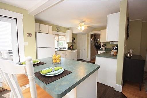 WELCOME HOME TO 5 HARRINGTON COURT!!!! Located on the West Side, within walking distance of Wakefield Center, commuter rail and steps from Moulton Park, this meticulously maintained 2 bedroom, 1 ?? bath colonial is picture perfect! Upon entering this home, you'll find yourself in the living room that boasts a beautiful brick fireplace and hardwood floors. Heading into the bright and open kitchen with breakfast bar and separate dining room, you???ll see your new place for all of your future gatherings! Second floor has a large master bedroom with a walk-in closet and fireplace, the second bedroom and a full bath! Imagine yourself enjoying relaxing times on the enclosed front porch or spread out while entertaining on the multi-level deck and private yard! Plenty of storage space to be found in the basement as well as the workshop/shed outside!
