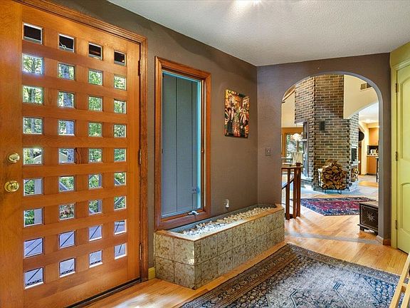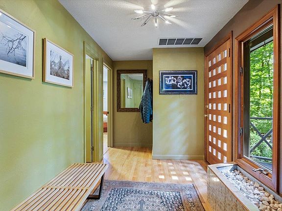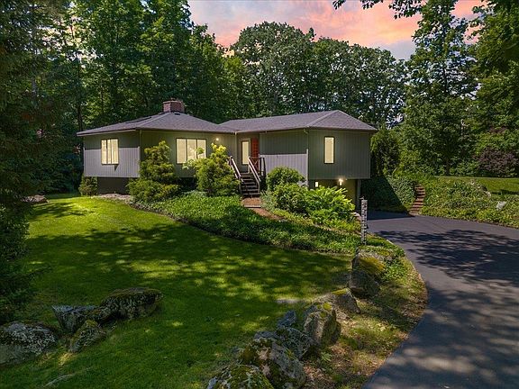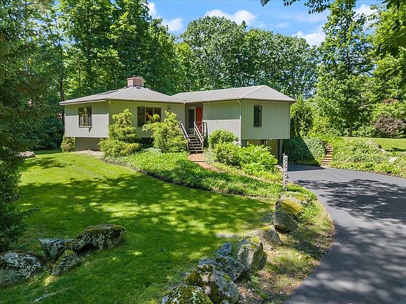 Looking for peace & tranquility ? This custom contemporary octagon home in Exeter is your perfect retreat. Designed to bring the outside in, it blends nature and modern living seamlessly. The living and dining areas feature oversized windows, cathedral ceilings, exposed beams, a brick fireplace, and hardwood floors. Gourmet kitchen with a tiger maple island, granite countertops, stainless steel appliances, wood fireplace, and glass slider leading to a wrap-around mahogany deck. The master suite includes a remodeled bath, transom windows, and a washer/dryer closet. The den features shiplap paneling, leading to a heated sunroom with cathedral ceiling, skylight, and sliders to a private backyard. A finished lower level includes additional bedrooms, mudroom, full bath, soundproof doorway, and a fully equipped kitchen, creating a town-approved self-contained apartment. Outside, enjoy a 700 sq ft slate patio, wrap-around mahogany deck with hot tub platform, and beautifully landscaped lot. Modern amenities include central air, central vac, updated systems, security, and mini-split heating/cooling units. There is also a two-car garage and separate heated barn/workshop with electricity. This home, understated yet full of surprises, is perfectly situated on a naturally landscaped lot. It offers a seamless blend of indoor and outdoor living, making it a perfect retreat for those seeking serenity without sacrificing modern comforts.