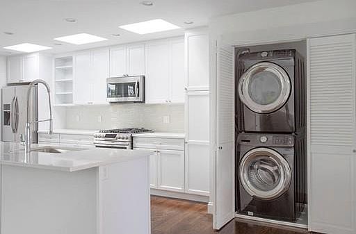 New, meticulously designed luxury loft style two bedroom, two bath. Tucked at the end of super charming Harvard Place, enter your own private entrance and emerge into the bright openness of the living/dining/kitchen with it's crisp white walls and dark wood floors, striking white cabinets, quarts counters, top of the line appliances, glass backsplash and sensational center island. Massive glass sliders open to private balcony overlooking wonderful green space. Two brand new thoughtfully designed sparkling baths with glass enclosures. Each bedroom has a double closet with custom built ins. Central Heat and A/C. Nest thermostat and security system. Laundry in unit, Additional storage, including bike or carriage storage outside unit. Pet negotiable. By appointment only. Possible short term or furnished. Call or text 617-686-3463