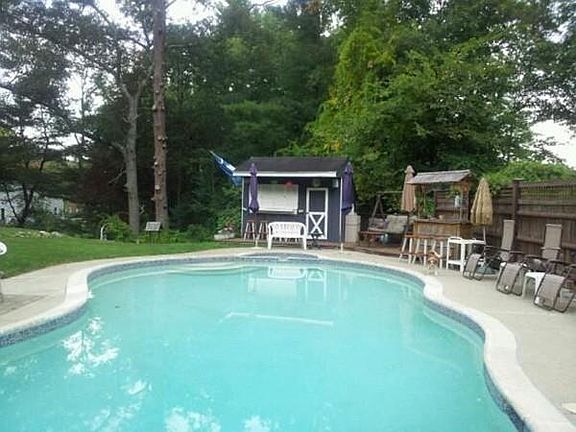 Open House Sunday 6/12 from 11:30-1:00!!! Quick Close Possible! This home has been freshly painted and hardwood floors have been redone!!! Ready for you to move right in! Dining room with hardwood floors and an arched entrance way into the living room with a wood burning stove set in the corner and surrounded by a beautiful brick mantel. Newer main bathroom!!! Beautiful bamboo flooring in the kitchen leading to the large back deck overlooking an incredible fenced in backyard with an in ground pool and cabana with electricity!! Access from backyard to the downstairs bathroom, family room and bonus room with a built in bar for all your entertaining needs!!! Storage shed, Fire pit, horseshoes in a large sandy area for all your summertime fun!!! Don't Miss Out!!!!