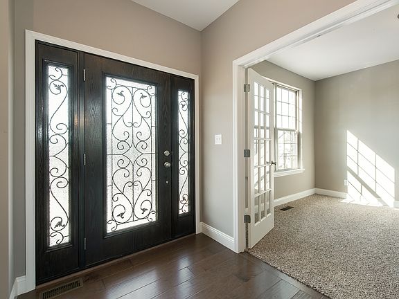 READY-TO-MOVE-IN, NEW CONSTRUCTION by Lombardo Homes on a cul-de-sac! A mix of brick and stone adorn the exterior lending rich character to this spectacular 2-story. Elk Ridge subdivision offers quick access to city conveniences as well as the quiet serenity of country living. A cozy front porch gives way to luxurious amenities as you discover an expansive gourmet Kitchen, soaring two-story Great Room, and engineered wood floors. A stone hearth warms the Great Room while a wall of windows enhances the open and airy feel. A huge island offers the perfect place for meal prep & entertaining; Kitchen boasts stainless steel appliances, gas range, double oven, butlers wrap, granite counters and a huge walk-in pantry. Escape to the Master Suite with an enormous walk-in closet. Walk-in closets in all bedrooms. Enjoy the convenience of 2nd-floor laundry and a Family Entry. Ready for your finishing, find a 9' pour in the lower level with walk-out. Irrigation system. High-efficiency HVAC.