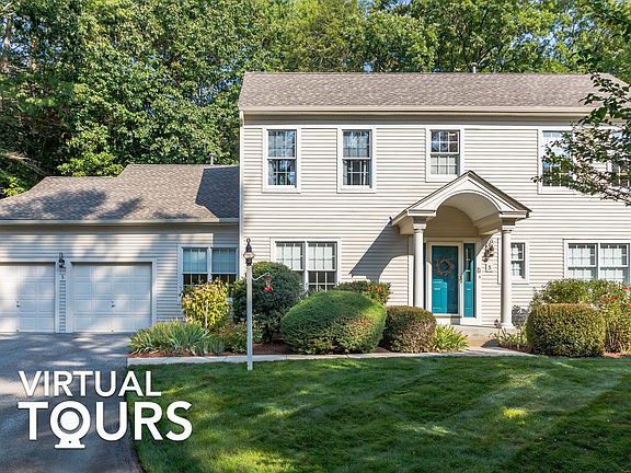 A secluded retreat with metropolitan advantage! Although situated only fifteen miles northwest of Boston, this highly desired 3 bd / 2.5 ba condo feels a worlds away! Located in the beautiful Huckins Farm community, which has an antique farmhouse, on-site equestrian center, and conservation land! Although rich in history, this community also features a rec center with a clubhouse, tennis courts, and outdoor swimming pool/spa. Notice the cul-de-sac location and lush front landscaping on your way into the home, where hardwood floors and bright natural light welcome you in. The living room has a vaulted ceiling, skylights, and a cozy fireplace. It sits next to the dining room, which has crown/chair rail molding and access to the three season porch. Flow into the kitchen, equipped with granite countertops, stainless steel appliances, a dual fuel stove with downdraft vent, and a center island with bar seating. Under cabinet, pendant, and recessed lighting create a bright space! A breakfast nook and sitting area sit adjacent. Laundry room and access to the porch off the kitchen. Wind down in the primary suite with a vaulted ceiling, two custom closets, a dual sink vanity, soaking tub, and tiled glass door shower! A powder room completes this level. Two upstairs bedrooms feature carpet and ceiling fans. They share a Jack and Jill bathroom, containing a dual sink vanity and shower/tub. The large attic space is accessible from this level. Relax and entertain on the porch and the wood deck overlooking the lawn and mature trees! New roof. Central A/C and Forced Air heating. Two car garage. In addition to the community amenities, HOA also covers snow removal, landscaping, and exterior maintenance. Located near shopping, restaurants, and conveniences! Easy access to hwy 3 and I-95. Buyer should verify all information.