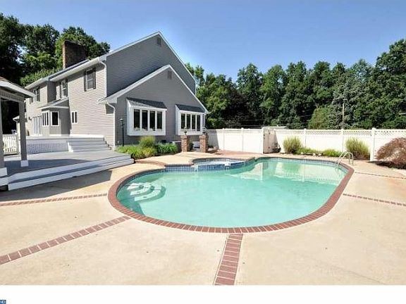 Medford for Under $400,000 with about 4300 sq.ft of amazing living space located on a 2 acre lot with great curb appeal. Local Custom Builder originally built this home for his family and himself. Lots of great features. Newer roof, Newer Front door entry, a New composite deck with a custom gazebo, in-ground pool w/ spa and the large fenced in back yard. Features include an impressive two story foyer with hardwood floors and a curved wood staircase. French doors open to a spacious living room with NEW wall to wall carpet and accented with a crown molding. The formal dining room features a hardwood floor, chair rail and crown molding. Both rooms feature boxed bay windows that over look the in-ground pool. The kitchen offers plenty of cabinet space, a peninsula counter top, a double convection wall oven, refrigerator, cook top and dishwasher. A full wall, 2 way, stone fireplace is the focal point of the large Breakfast room which is shared with the family room. You will find all NEW wall to wall carpet in the large family room. There is a convenient wet bar with storage for wine bottles and glasses, perfect for entertaining. Two French doors open to a NEW composite deck and tree lined back yard with privacy. A NEW full bath with a shower and large Laundry/Mud room with cabinetry, washer, dryer and a sink complete the first level. All of the bedrooms feature NEW wall to wall carpet. The Master Bedroom suite comes complete with a a stone fireplace, sitting area, dressing room with a vanity and sink, a super- sized walk-in closet and a master bathroom with a jetted tub, shower and vanity sink. There are three guest bedrooms, all with large closets and a full hall bath. The finished, Walk-out lower level offers an amazing amount of entertaining space with its' large game room, full sized bar with enough seating for at least 8 bar stools, plus behind the bar storage & a sink. Other amenities of the lower level include a full bathroom with a shower (convenient for the pool guests) office and an additional room. From this level you can walk up to the pool area. Dual zone HVAC. The home has been beautifully landscaped and a long driveway with extra parking can accommodate even your RV or Boat! Conveniently located close to Route 70 with easy access to all the major highways, 45 minutes from Long Beach Island and the Jersey shore, and an easy commute to Philadelphia.