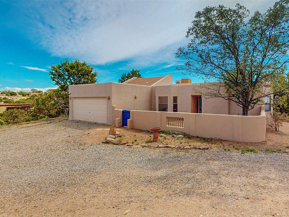 Three mini-splits were installed in 2021 for extra heating and cooling. There is a 2-car garage with circular driveway and guest parking. A large wood deck spans the length of the home. All this plus Eldorado amenities, Senior Center, Library, local shopping and only minutes into Santa Fe.