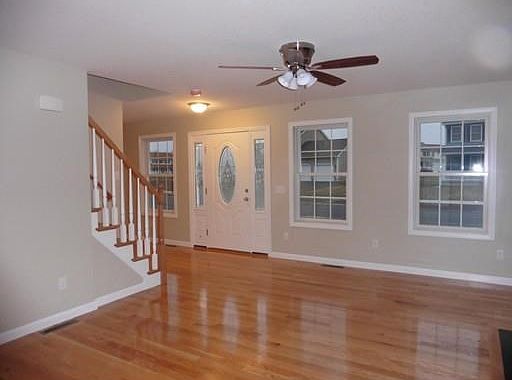 NEW CONSTRUCTION and move in ready! Very spacious 4 bedroom colonial in Courtside subdivision. Beautiful hardwood floors on the entire first floor. Living room has gas fireplace, ceiling fan and hardwood floor. Dining room has ceiling fan and hardwood floor that opens to large eat in kitchen with hardwood floor, kitchen island, pendant lighting, granite counter tops, eating area with ceiling fan and slider to large patio. Second floor offers a very large master suite with soaking tub, separate shower, double vanity with granite and tile floor, large walk in closet and wall to wall carpet. 3 more bedrooms with ceiling fans and wall to wall carpet, full bath with double vanity and granite counter top as well as 2nd floor large laundry room with washer and dryer hook ups, tile floor and closet top off the second floor. Unique side entry 2 car garage on the corner of cul-de-sack. As a bonus this home has a completely fenced back yard with vinyl siding and large patio.