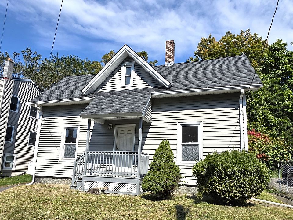 Charming Cape located in great convenient location offers a full makeover! Walk into the freshly painted Family room that opens to both the kitchen and the Dining room with recessed lighting. New Center Island Kitchen with stainless steel appliances, white cabinets and granite counters. Formal DR or make this room what you need-den/office or play room opens to kitchen and Family room. Upstairs you will find 3 freshly painted spacious bedrooms with new carpeting. Home has mostly all new flooring-laminate on first and carpeting on 2nd and paint throughout, aprox. 14 yr old roof and vinal siding. New interior doors. The home is located within walking distance to stores, bus line, park and more. It offers a large lot that is lightly wooded and open and a great space for family events.