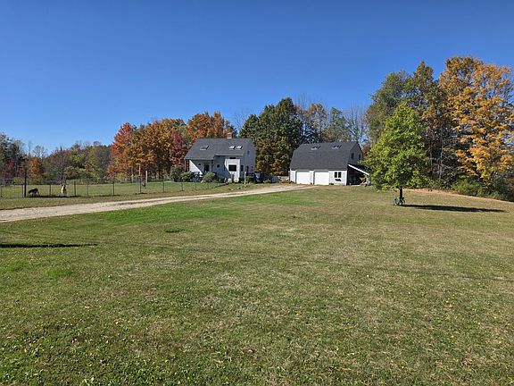 Need Space? This contemporary saltbox home on over 5 acres features a 2-story, 2-car garage. The home includes 3 bedrooms, 2 full baths (one off the primary bedroom), a finished walkout lower level with a large family room and bedroom, and a wrap-around deck with access from the living room or side entry. The new 2025 boiler ensures efficiency. The 2-story gambrel-style garage offers ample space for vehicles and a workshop, with potential for an accessory apartment upstairs (check with the town CEO for possibilities). Enjoy the fire pit off the lower-level patio, relax on the large rear deck overlooking the woods, or use the vast front yard for ball games or as an enclosed space for pets.