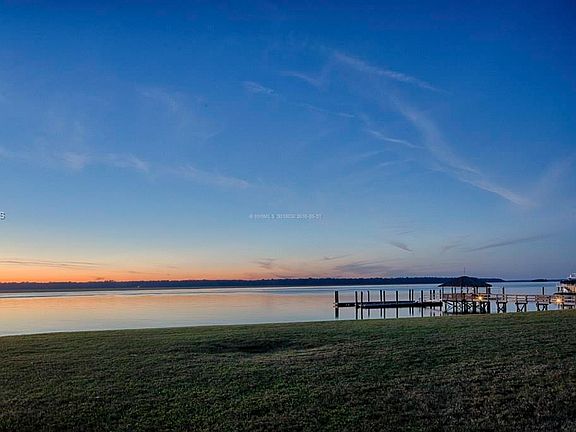 Eight-acre legacy, deep water property with new private dock now being offered in exclusive Colleton River Plantation. 7944' two story plantation home with old-growth wide plank eastern white pine floors. 4 bedrooms in the Main House plus a Carriage House which is a complete Guest Suite including a Bedroom, Bath, Kitchen, and Sitting Area viewing the one-acre pond. 6 fireplaces, 4 covered porches, state of the art geothermal heating and AC, chef's kitchen with six-burner commercial Southbend range. Plus a 1500' unfinished basement. 2.2 acre adjoining waterfront homesite can be purchased for discounted price of $750k with purchase of home.