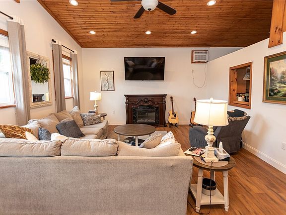 Beautifully remodeled home on a corner lot! This 3 bedroom 2 bath house offers a desirable custom kitchen with cathedral, wood ceilings that continue into a spacious great room/living room, a formal dining room, a main level bedroom with a full bath/ laundry combo and updates throughout! Upstairs hosts 2 bedrooms and a full bath. The outdoor space provides a back patio, a spacious shed and a side deck! Meticulously maintained and stunning detail throughout! This home has also been smoke and pet free.